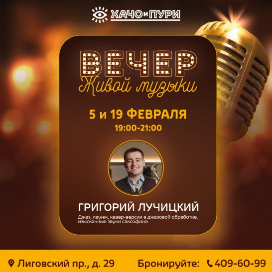 Чарующий февраль в Хачо и Пури Лиговский! Живая музыка 5 и 19 февраля с 19:00.