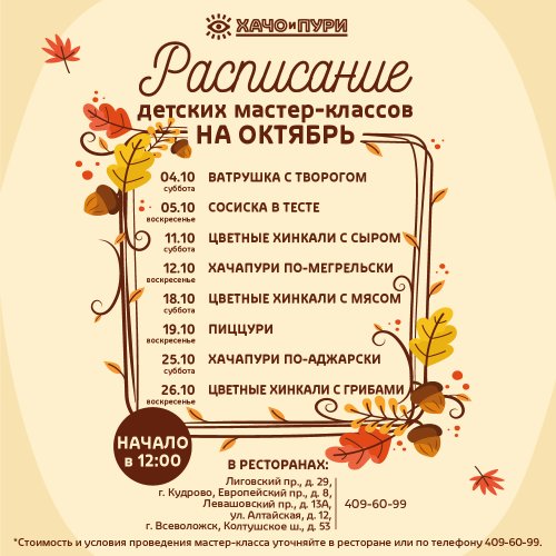 Расписание детских мастер-классов в Хачо и Пури в октябре в "Хачо и Пури":