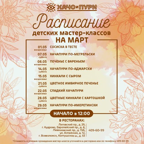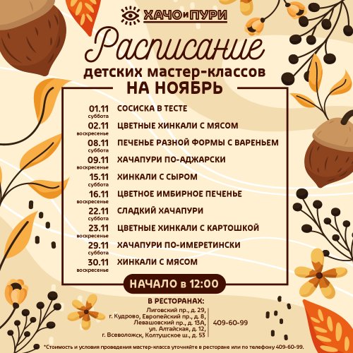 Расписание детских мастер-классов в Хачо и Пури в ноябре в "Хачо и Пури":