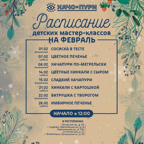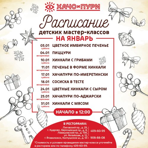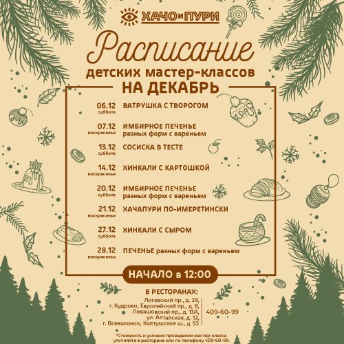 Декабрь – время волшебства и кулинарных чудес в "Хачо и Пури"! Расписание детских мастер-классов декабрь.
