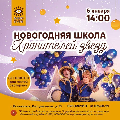 НОВОГОДНЯЯ ЕЛКА 2026 для детей в "Хачо и Пури" Всеволожск. 6 января 2026 в 14:00 детская программа "Новогодняя школа Хранителей звезд"!