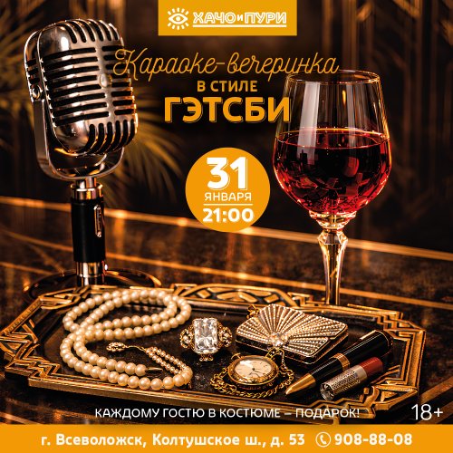 Окунитесь в эпоху джаза и блеска на караоке-вечеринке в стиле Гэтсби в ресторане «Хачо и Пури» во Всеволожске!