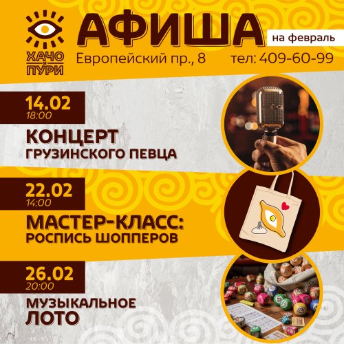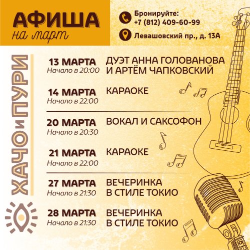 Афиша на март в ресторане Хачо и Пури Всеволожск: