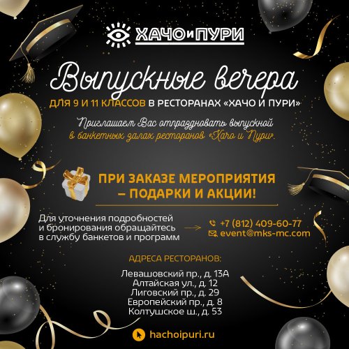 Приглашаем Вас отпраздновать выпускной в банкетных залах ресторанов «Хачо и Пури»