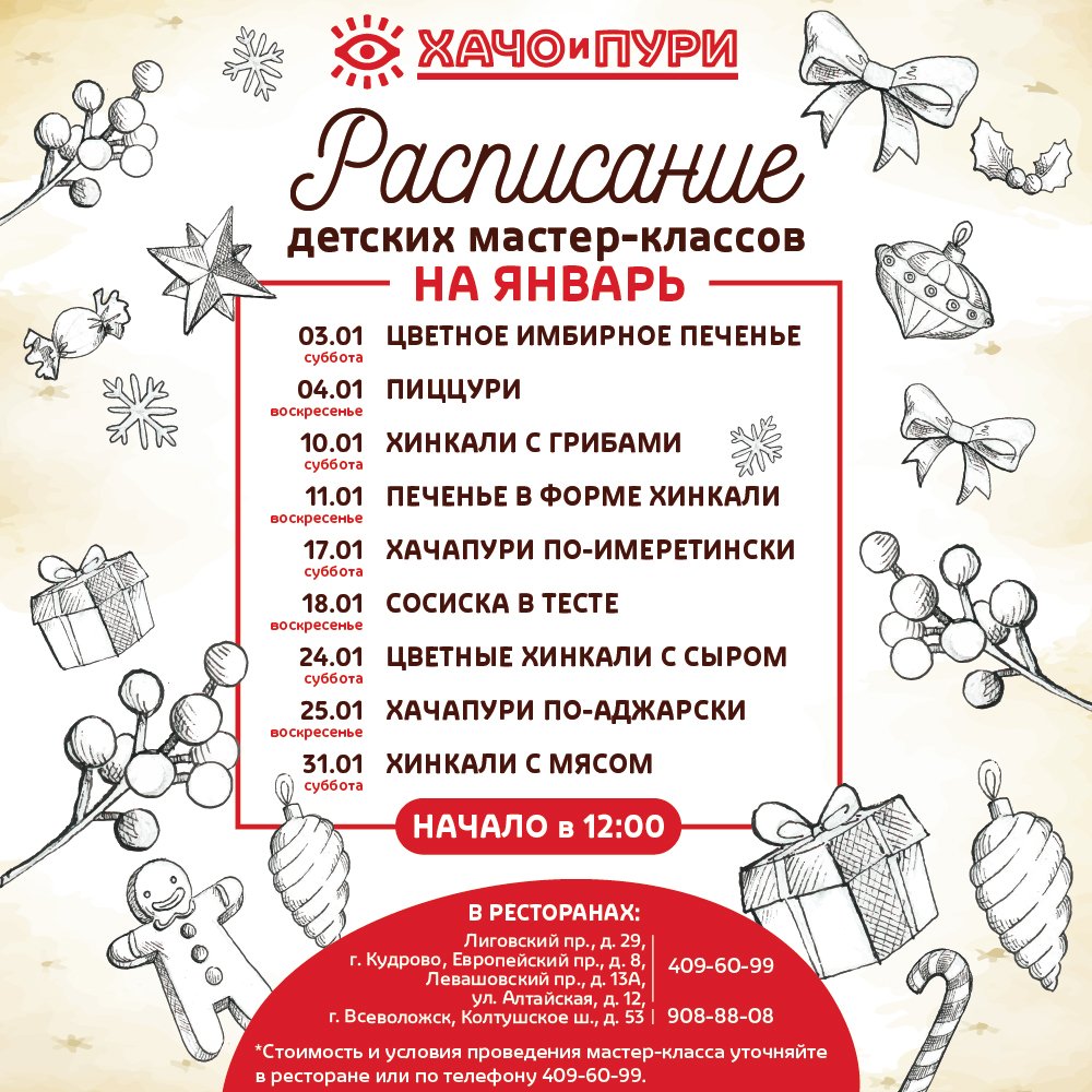 В январе продолжаем творить волшебные кулинарные шедевры на детских мастер-классах в ресторанах "Хачо и Пури".