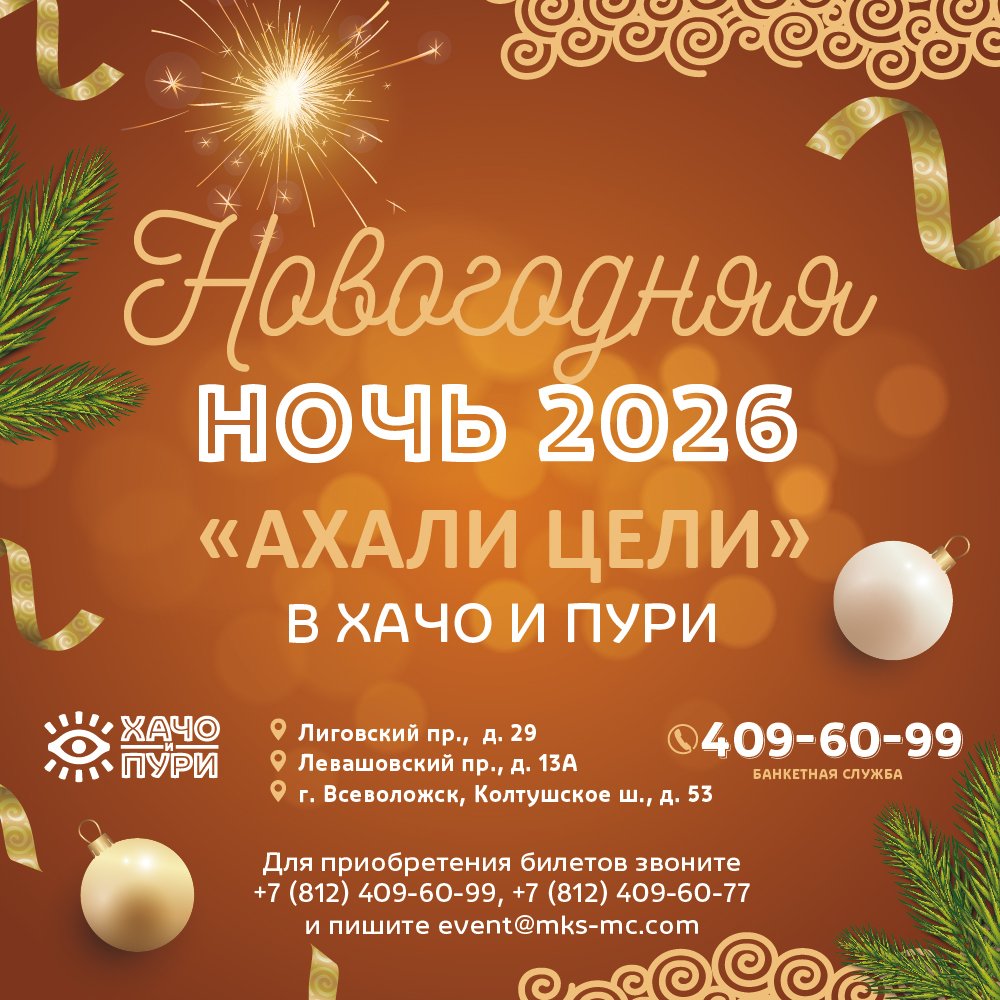 Сказочная Новогодняя ночь 2026 в ресторанах "Хачо и Пури"! Приглашаем Вас отпраздновать Новогоднюю ночь 2026 по-грузински в атмосфере гостеприимства, радушия и щедрости в ресторанах "Хачо и Пури" по адресам: