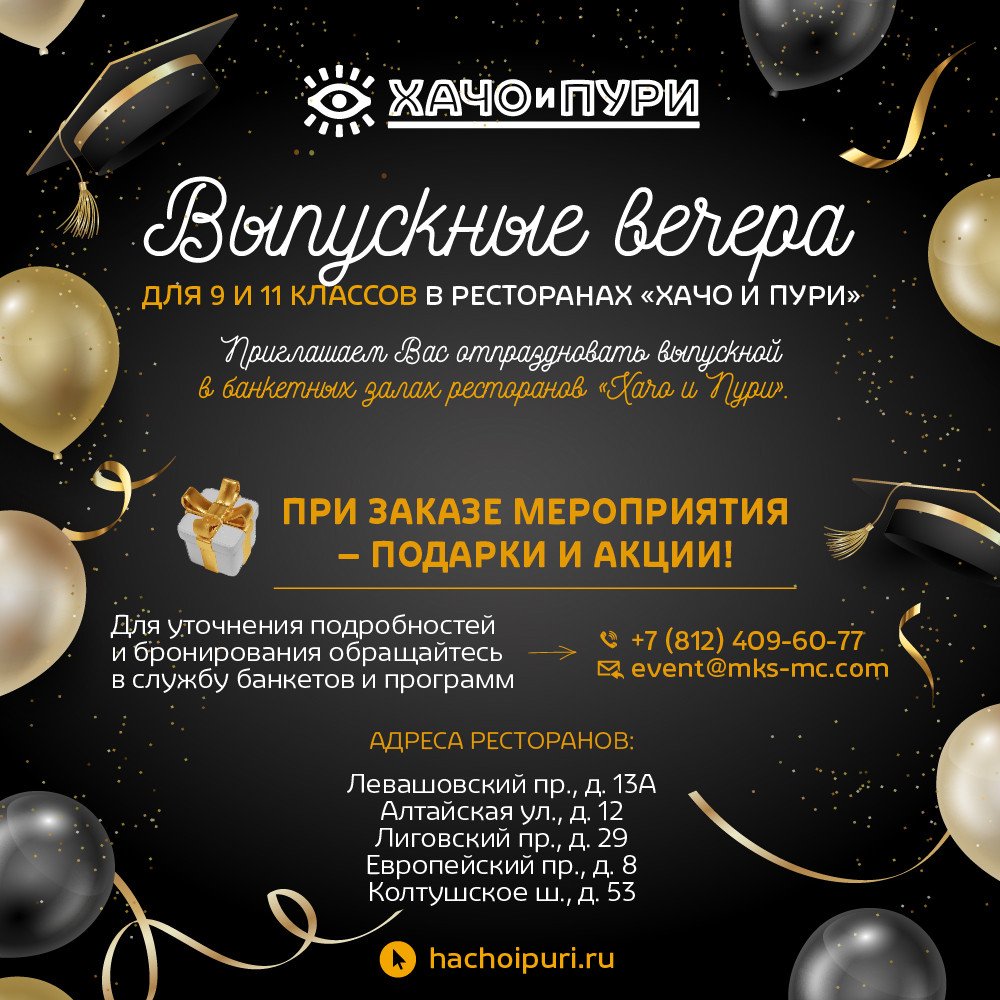 Приглашаем отметить выпускные вечера для 9 и 11 классов в Хачо и Пури! Окончание учебы – это особенный момент, достойный волшебного празднования.